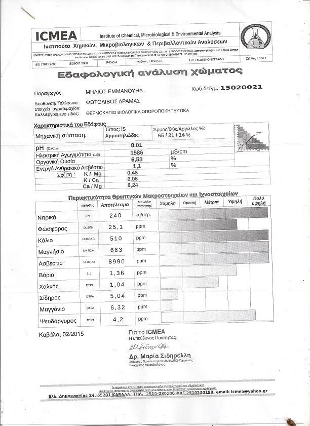 * Το παραπάνω θεωρητικό μοντέλο επιβεβαιώθηκε πειραματικά με τις απαραίτητες αναλύσεις σύστασης εδάφους στο Πρότυπο Βιολογικό Θερμοκήπιο "ΚΤΗΜΑ ΜΗΛΙΟΣ" Δράμας, όπου μετά εφαρμογή 5 ετών του compost γεωσκώληκα της "ΒΙΟΟΡΑΜΑ" οι αναλύσεις επιβεβαιώνουν, ότι δεν υπάρχουν ανάγκες βασικής λίπανσης, επειδή αυτές έχουν καλυφθεί από την 5-ετή χρήση του βραδέως αποικοδομούμενου compost γεωσκώληκα της "ΒΙΟΟΡΑΜΑ" όπως περιγράφηκε και στο Παράδειγμα (βλέπε σχετικές photos).